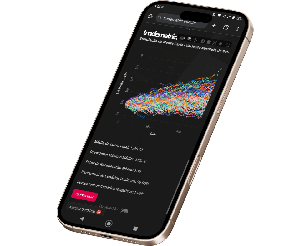 Na Trademetric, acreditamos que o mercado financeiro é mais do que gráficos e números: é ciência, estratégia e precisão. Com uma abordagem fundamentada em análises estatísticas e métodos inovadores, nosso objetivo é transformar dados em decisões inteligentes. Estamos aqui para redefinir a forma como você vê e interage com o mercado financeiro.